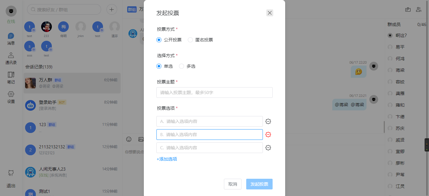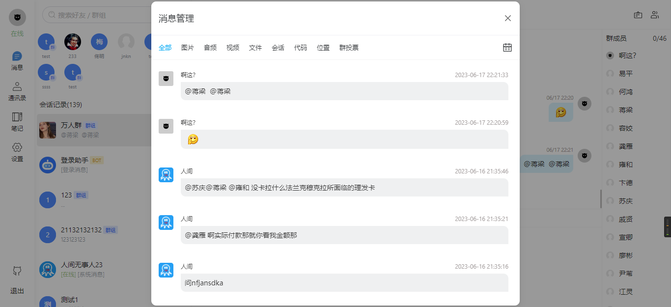 群管理:对于群组聊天,我们的解决方案提供了群管理功能,包括禁言和管理权限等设置。这个功能可以帮助管理员有效地管理群内秩序和交流质量。