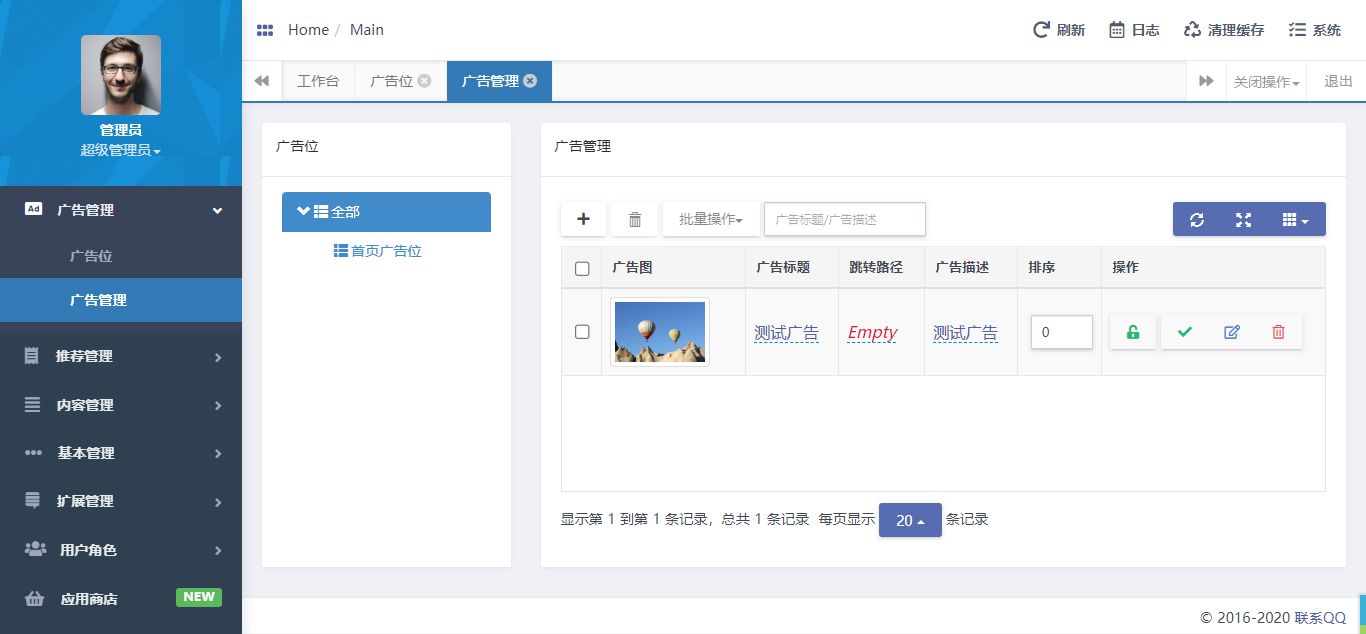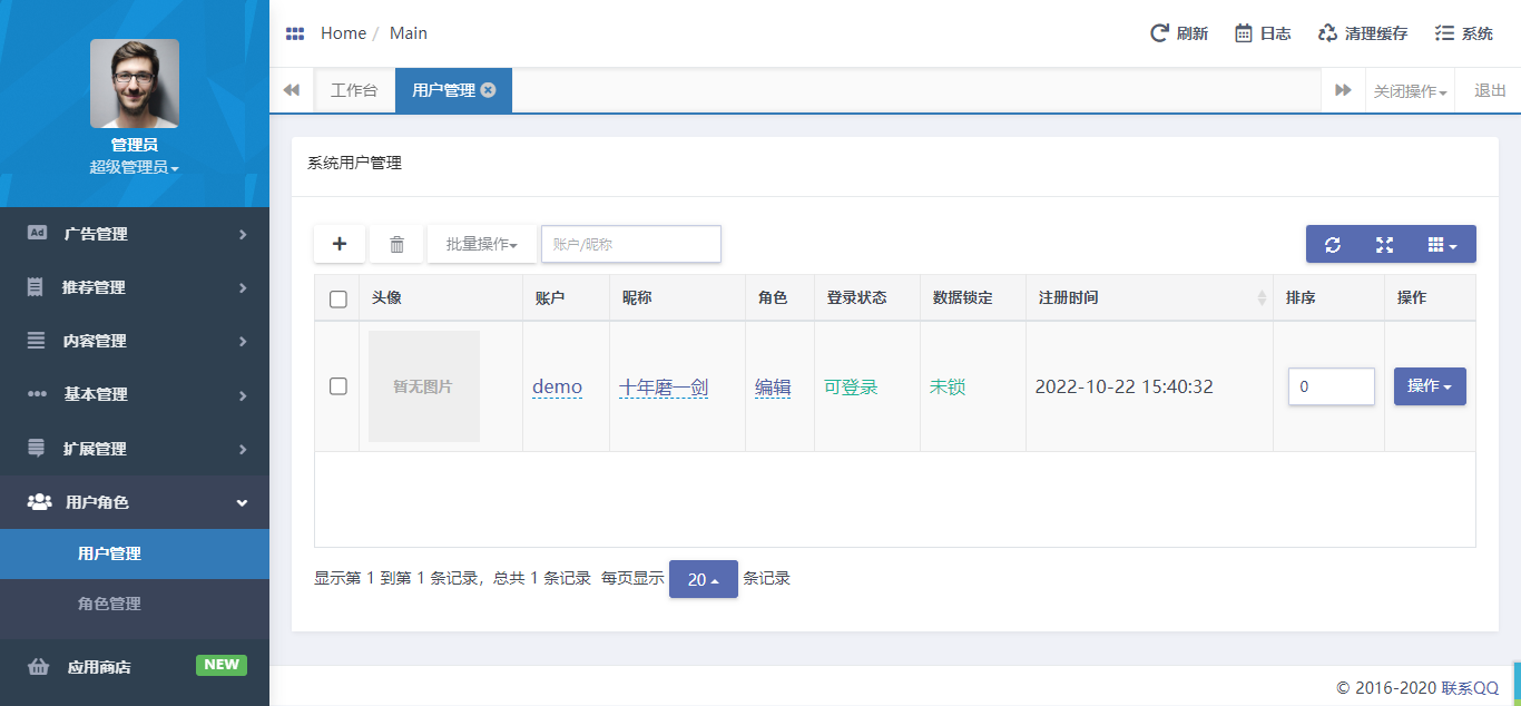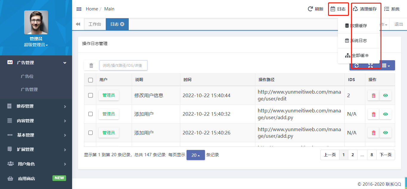 10.通用型的后台权限管理框架,各管理模块操作简单,开箱即用。支持前后台用户的操作记录覆盖跟踪。