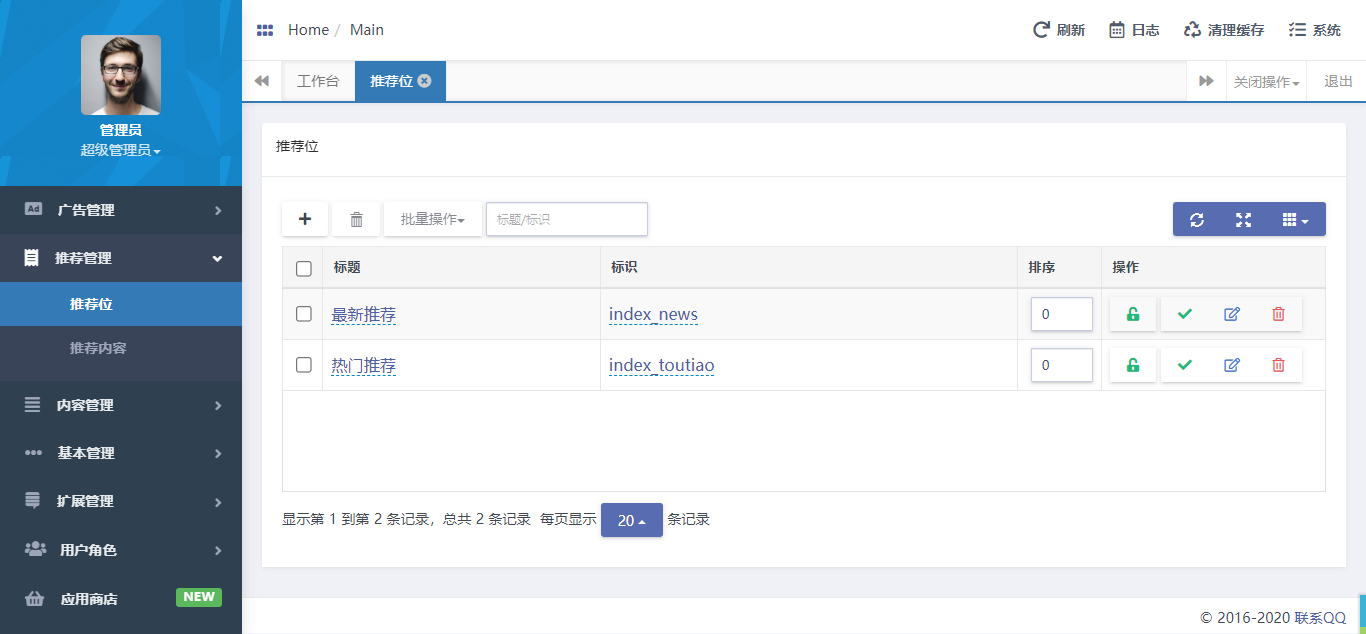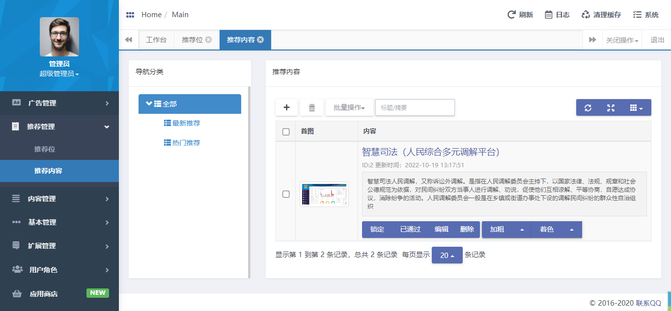 7、推荐管理,文章热门推荐展示,可以自定义推荐位
