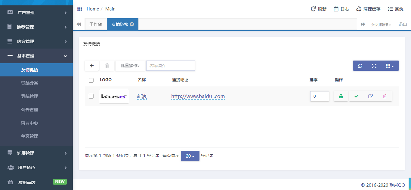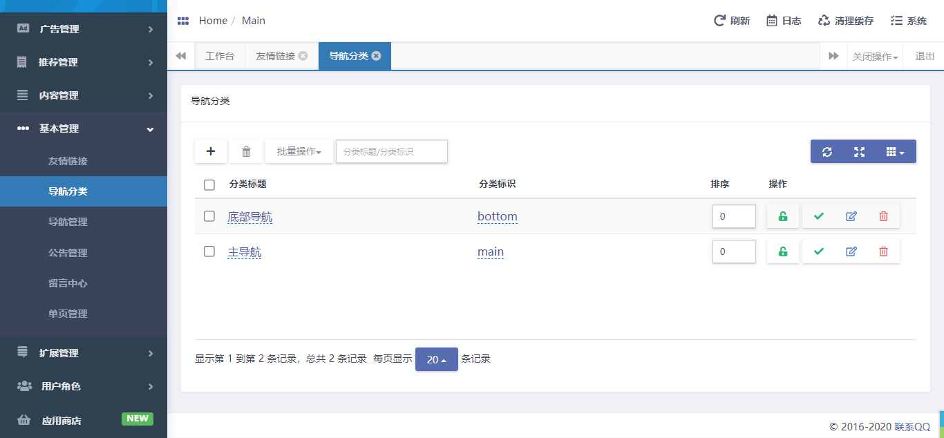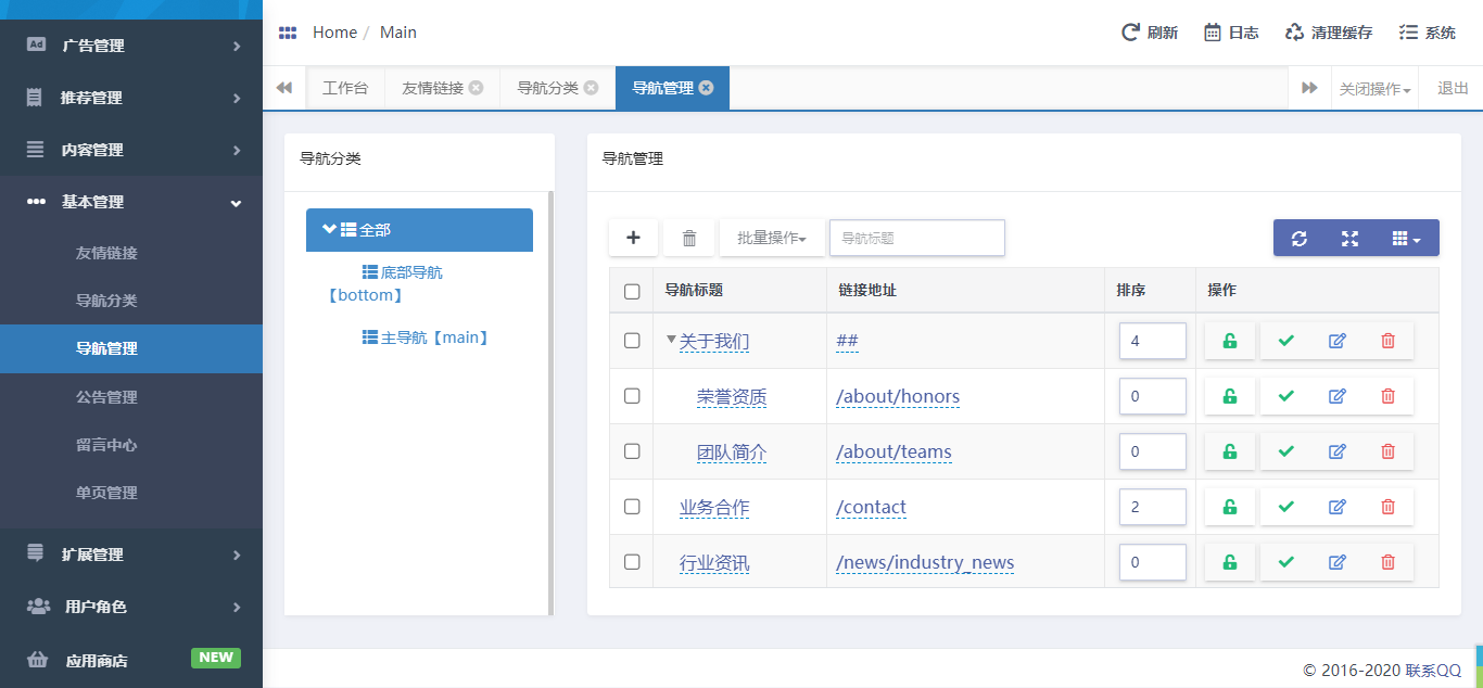 11、导航管理,自定义导航栏的管理,添加自定义外链内链