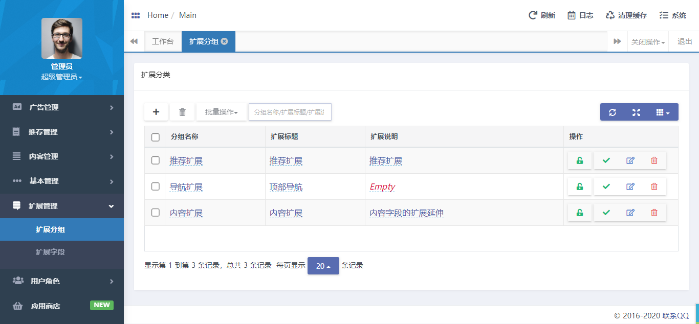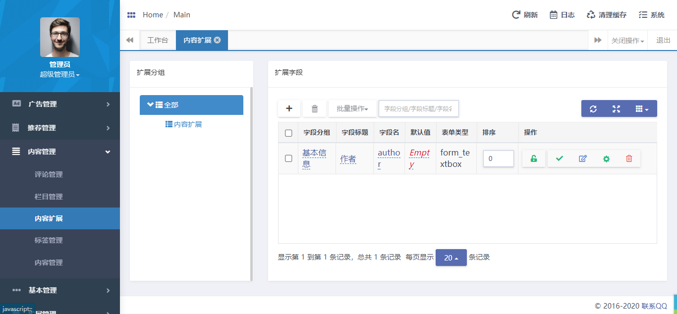 9、内容扩展,对于表字段的多项扩展,可以丰富自定义字段