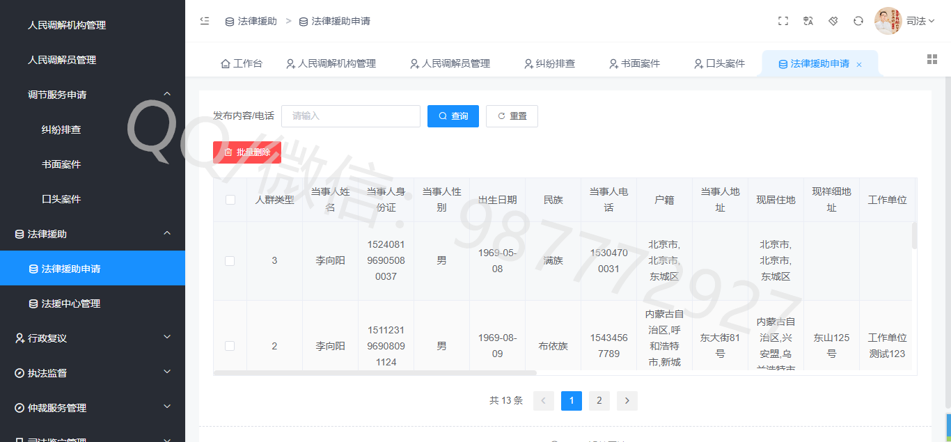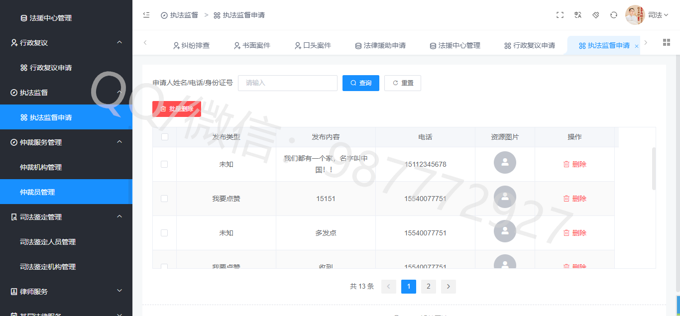 2、律师行政管理系统