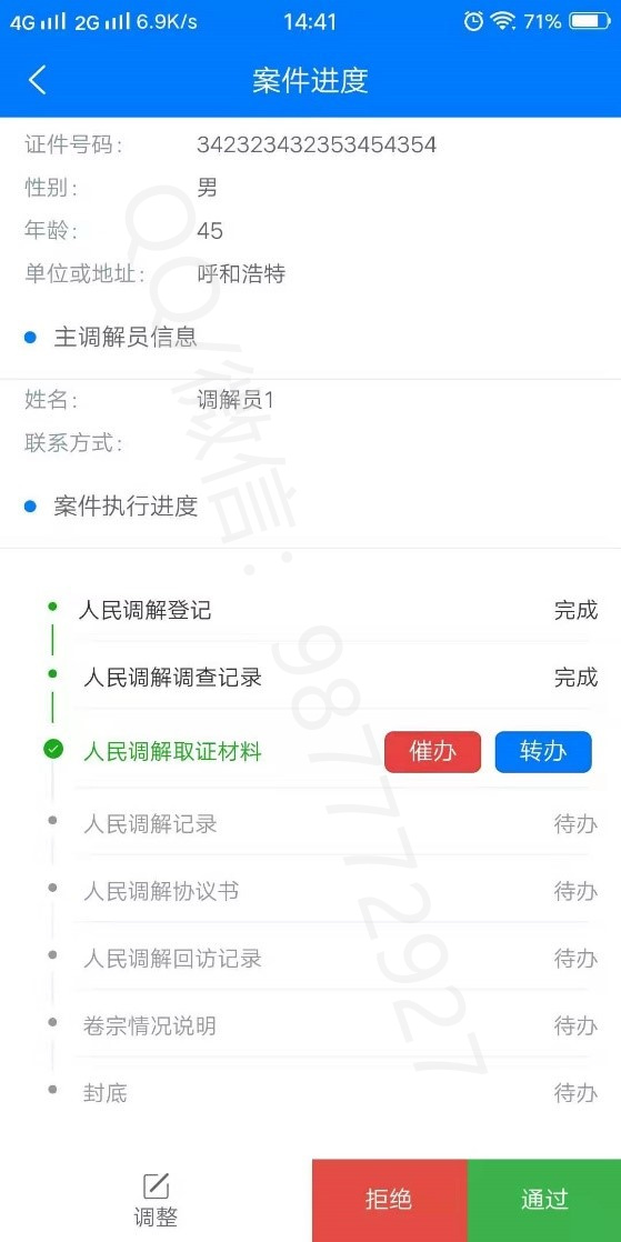 5 | 人民调解 | 调解委员会展示,并支持而在线提交调解申请,在线指派调解员(调解员短信提醒),线上调解,邀请第三方,第四方上线 ,生成案件文书。调解不成功则转到专业调解员调解。两次都不能解决的标记为“疑难案件”。分为自主调解、指派调解 | |