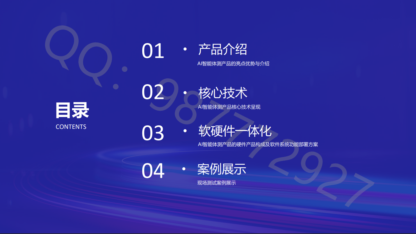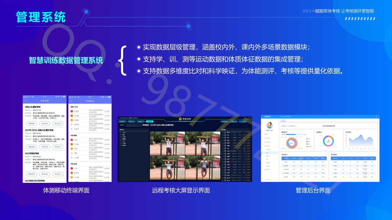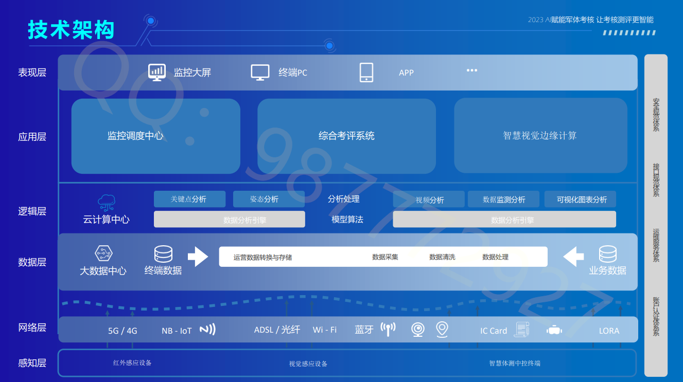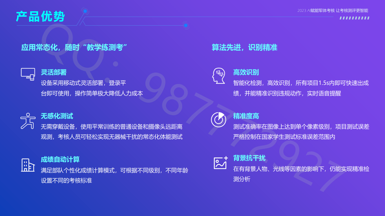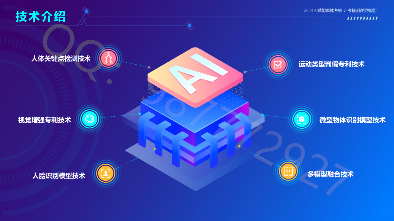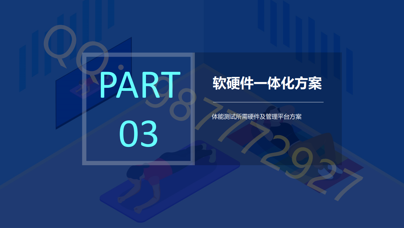设备采用人体骨骼关键点分析技术,进行人体姿态行为实时分析,动作捕捉、视觉SLAM、智能物联,可提供快速高效准确的实现群体人员体质测评服务,系统部署灵活,支持多机位快速测试、多机位组合测试,适合公共空间的大规模群体测试。支持引体向上、双杠臂屈伸、平板支撑、仰卧卷腹、俯卧撑、立定跳远、50米跑等不少于8项测试项目。